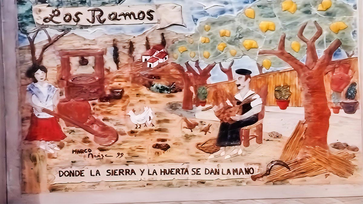 NOTA: La imagen de portada es una fotografía que conservo del mural que se encontraba a la entrada de Los Ramos, que tras un accidente fue restituido por el que preside la entrada a la pedanía en la actualidad.